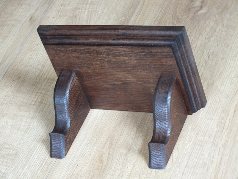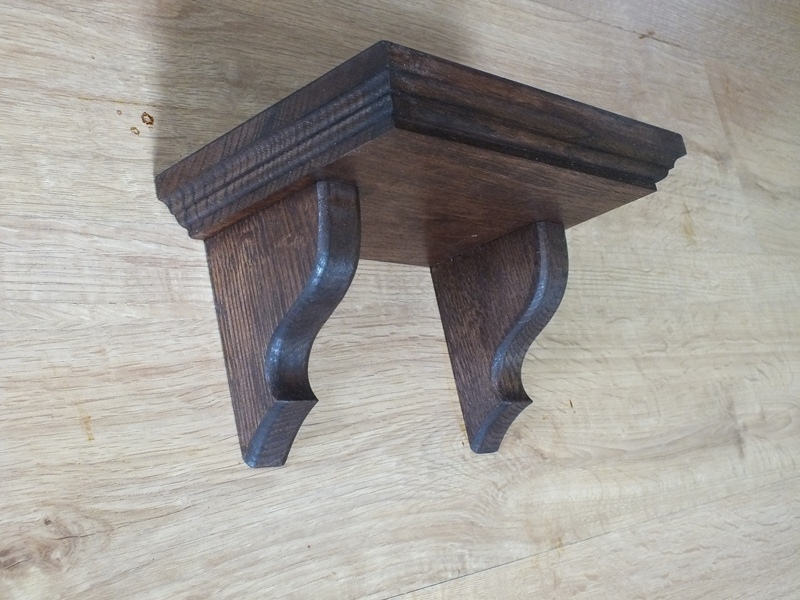 Półeczka dębowa, kwietnik wykonany z litego drewna dębowego, bejcowany na kolor orzech, lakierowany.